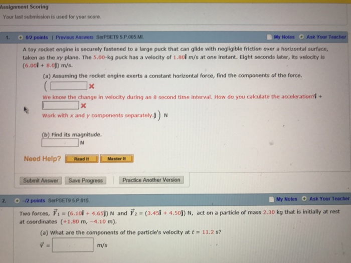 Solved A Toy Rocket Engine Is Securely Fastened To A Large Puck That Can Glide With Negligible Friction Over A Horizontal Surface Taken As The X Y Plane The 4 00 Kg Puck Has